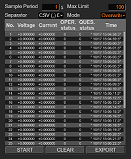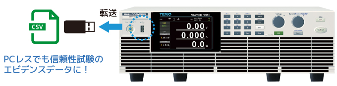 測定された電圧、電流、および電力のデータをUSBドライブに記録できます。また、リモート経由でPCに記録することもできます。